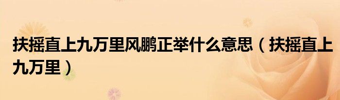 关于扶摇直上九万里风鹏正举什么意思,扶摇直上九万里这个很多人还不知道,今天菲菲来为大家解答以上的问题,现在让我们一起来看看吧!