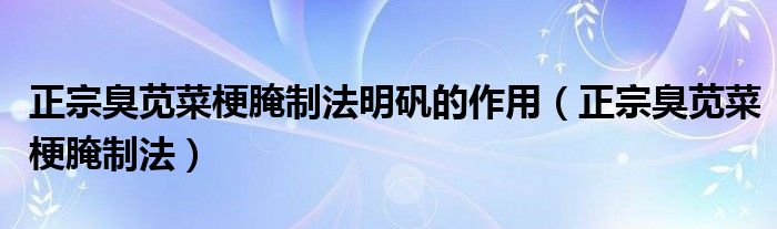 大家好,小晋来为大家解答以下问题,关于正宗臭苋菜梗腌制法明矾的作用,正宗臭苋菜梗腌制法很多人还不知道,今天让我们一起来看看吧!