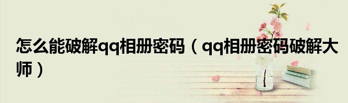 大家好,来宝来为大家解答以下问题,怎么能破解qq相册密码,qq相册密码破解大师很多人还不知道,今天让我们一起来看看吧!
