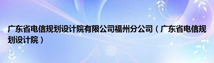 关于广东省电信规划设计院有限公司福州分公司,广东省电信规划设计院这个很多人还不知道,今天菲菲来为大家解答以上的问题,现在让我们一起来看看吧!
