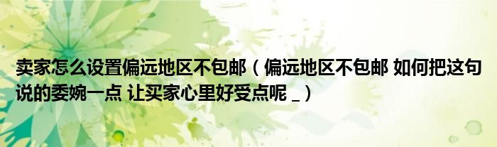 关于卖家怎么设置偏远地区不包邮,偏远地区不包邮 如何把这句说的委婉一点 让买家心里好受点呢 _这个很多人还不知道,今天菲菲来为大家解答以上的问题,现在让我们一起来看看吧!