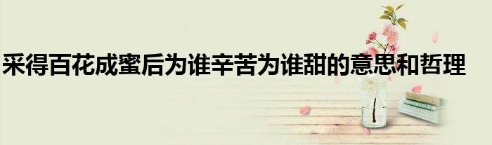 关于采得百花成蜜后为谁辛苦为谁甜的意思和哲理这个很多人还不知道,今天菲菲来为大家解答以上的问题,现在让我们一起来看看吧!