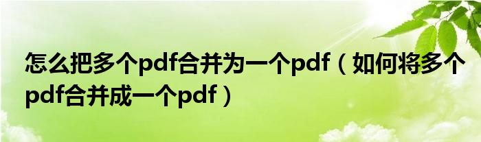 关于怎么把多个pdf合并为一个pdf,如何将多个pdf合并成一个pdf这个很多人还不知道,今天菲菲来为大家解答以上的问题,现在让我们一起来看看吧!