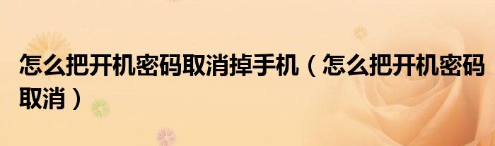 大家好,来宝来为大家解答以下问题,怎么把开机密码取消掉手机,怎么把开机密码取消很多人还不知道,今天让我们一起来看看吧!