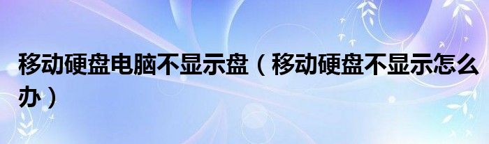 关于移动硬盘电脑不显示盘,移动硬盘不显示怎么办这个很多人还不知道,今天菲菲来为大家解答以上的问题,现在让我们一起来看看吧!