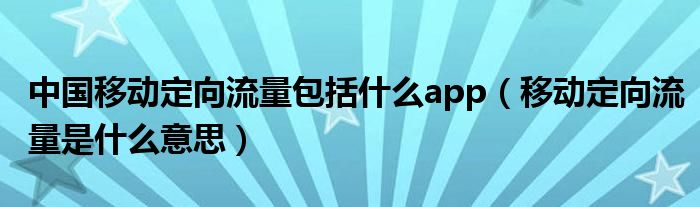 关于中国移动定向流量包括什么app,移动定向流量是什么意思这个很多人还不知道,今天菲菲来为大家解答以上的问题,现在让我们一起来看看吧!