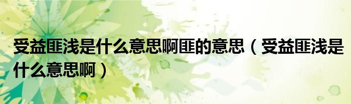 大家好,小晋来为大家解答以下问题,关于受益匪浅是什么意思啊匪的意思,受益匪浅是什么意思啊很多人还不知道,今天让我们一起来看看吧!