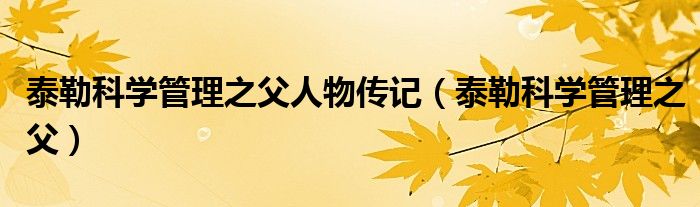 关于泰勒科学管理之父人物传记,泰勒科学管理之父这个很多人还不知道,今天菲菲来为大家解答以上的问题,现在让我们一起来看看吧!