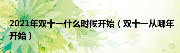 关于2021年双十一什么时候开始,双十一从哪年开始这个很多人还不知道,今天菲菲来为大家解答以上的问题,现在让我们一起来看看吧!