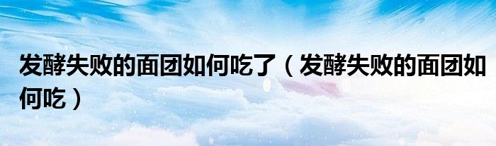 大家好,小晋来为大家解答以下问题,关于发酵失败的面团如何吃了,发酵失败的面团如何吃很多人还不知道,今天让我们一起来看看吧!