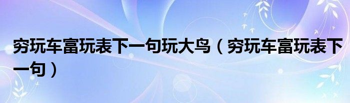 关于穷玩车富玩表下一句玩大鸟,穷玩车富玩表下一句这个很多人还不知道,今天菲菲来为大家解答以上的问题,现在让我们一起来看看吧!
