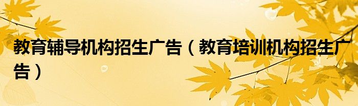 关于教育辅导机构招生广告,教育培训机构招生广告这个很多人还不知道,今天菲菲来为大家解答以上的问题,现在让我们一起来看看吧!