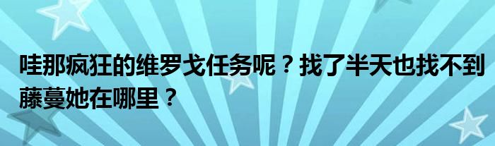 关于哇那疯狂的维罗戈任务呢?找了半天也找不到藤蔓她在哪里?这个很多人还不知道,今天菲菲来为大家解答以上的问题,现在让我们一起来看看吧!