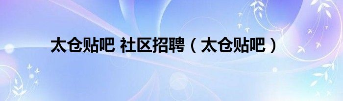 关于太仓贴吧 社区招聘,太仓贴吧这个很多人还不知道,今天菲菲来为大家解答以上的问题,现在让我们一起来看看吧!