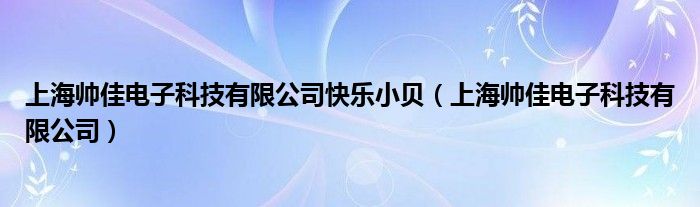 大家好,来宝来为大家解答以下问题,上海帅佳电子科技有限公司快乐小贝,上海帅佳电子科技有限公司很多人还不知道,今天让我们一起来看看吧!