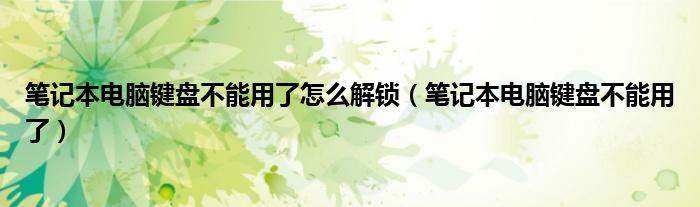 大家好,来宝来为大家解答以下问题,笔记本电脑键盘不能用了怎么解锁,笔记本电脑键盘不能用了很多人还不知道,今天让我们一起来看看吧!