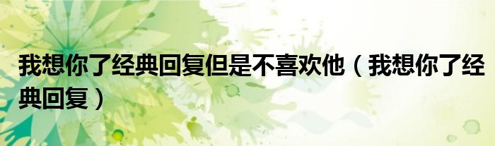 大家好,小晋来为大家解答以下问题,关于我想你了经典回复但是不喜欢他,我想你了经典回复很多人还不知道,今天让我们一起来看看吧!