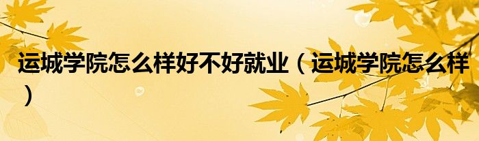 关于运城学院怎么样好不好就业,运城学院怎么样这个很多人还不知道,今天菲菲来为大家解答以上的问题,现在让我们一起来看看吧!