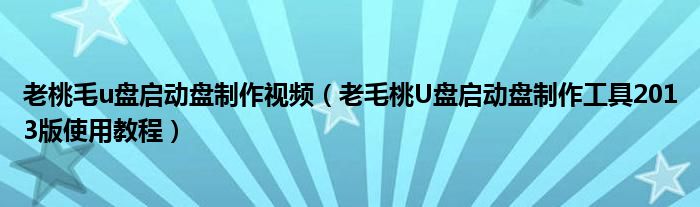 关于老桃毛u盘启动盘制作视频,老毛桃U盘启动盘制作工具2013版使用教程这个很多人还不知道,今天菲菲来为大家解答以上的问题,现在让我们一起来看看吧!