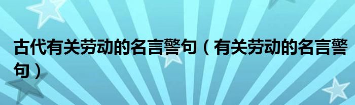 关于古代有关劳动的名言警句,有关劳动的名言警句这个很多人还不知道,今天菲菲来为大家解答以上的问题,现在让我们一起来看看吧!