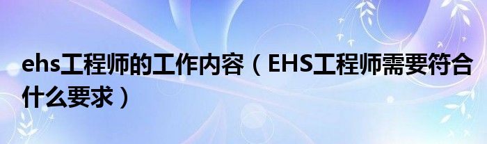 关于ehs工程师的工作内容,EHS工程师需要符合什么要求这个很多人还不知道,今天菲菲来为大家解答以上的问题,现在让我们一起来看看吧!