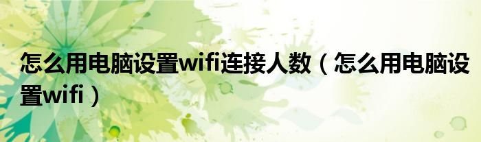 怎么用电脑设置wifi连接人数(怎么用电脑设置wifi)