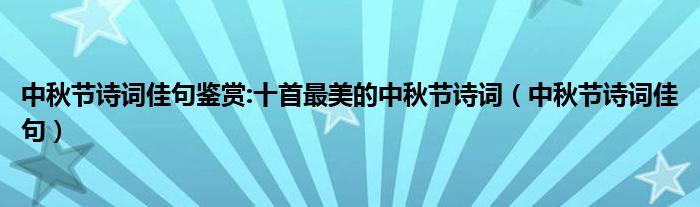 中秋节诗词佳句鉴赏:十首最美的中秋节诗词(中秋节诗词佳句)