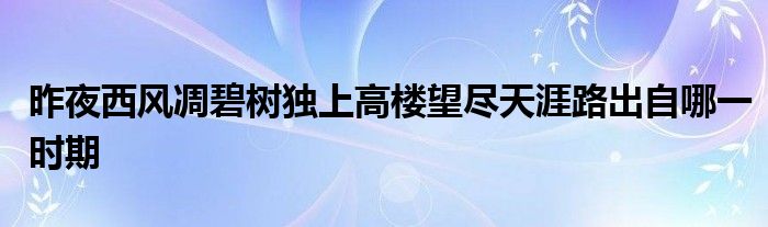 关于昨夜西风凋碧树独上高楼望尽天涯路出自哪一时期这个很多人还不知道,今天菲菲来为大家解答以上的问题,现在让我们一起来看看吧!