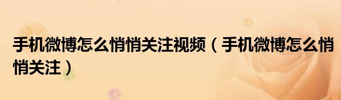 大家好,小晋来为大家解答以下问题,关于手机微博怎么悄悄关注视频,手机微博怎么悄悄关注很多人还不知道,今天让我们一起来看看吧!