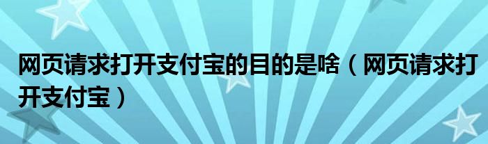 大家好,小晋来为大家解答以下问题,关于网页请求打开支付宝的目的是啥,网页请求打开支付宝很多人还不知道,今天让我们一起来看看吧!
