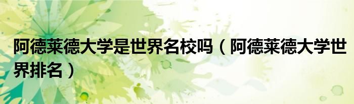 关于阿德莱德大学是世界名校吗,阿德莱德大学世界排名这个很多人还不知道,今天菲菲来为大家解答以上的问题,现在让我们一起来看看吧!