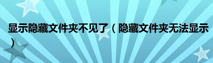 大家好,来宝来为大家解答以下问题,显示隐藏文件夹不见了,隐藏文件夹无法显示很多人还不知道,今天让我们一起来看看吧!