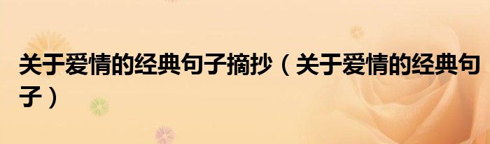 关于关于爱情的经典句子摘抄,关于爱情的经典句子这个很多人还不知道,今天菲菲来为大家解答以上的问题,现在让我们一起来看看吧!