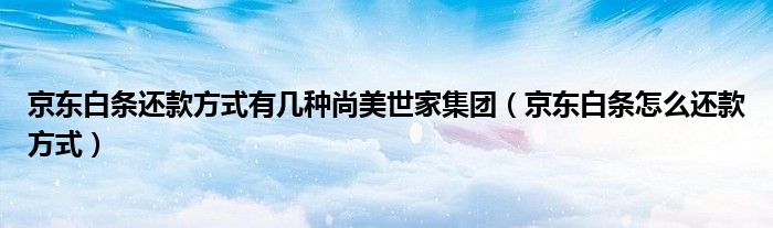 大家好,小晋来为大家解答以下问题,关于京东白条还款方式有几种尚美世家集团,京东白条怎么还款方式很多人还不知道,今天让我们一起来看看吧!