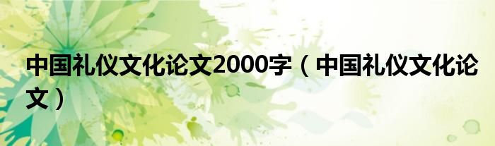 关于中国礼仪文化论文2000字,中国礼仪文化论文这个很多人还不知道,今天菲菲来为大家解答以上的问题,现在让我们一起来看看吧!