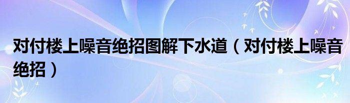 关于对付楼上噪音绝招图解下水道,对付楼上噪音绝招这个很多人还不知道,今天菲菲来为大家解答以上的问题,现在让我们一起来看看吧!