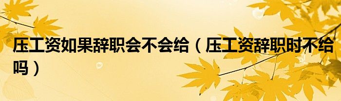 大家好,小晋来为大家解答以下问题,关于压工资如果辞职会不会给,压工资辞职时不给吗很多人还不知道,今天让我们一起来看看吧!
