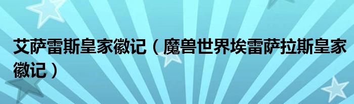 关于艾萨雷斯皇家徽记,魔兽世界埃雷萨拉斯皇家徽记这个很多人还不知道,今天菲菲来为大家解答以上的问题,现在让我们一起来看看吧!