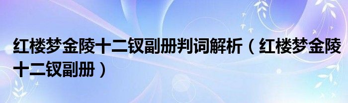 关于红楼梦金陵十二钗副册判词解析,红楼梦金陵十二钗副册这个很多人还不知道,今天菲菲来为大家解答以上的问题,现在让我们一起来看看吧!