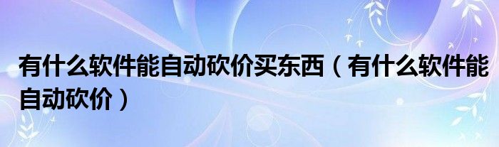 大家好,小晋来为大家解答以下问题,关于有什么软件能自动砍价买东西,有什么软件能自动砍价很多人还不知道,今天让我们一起来看看吧!
