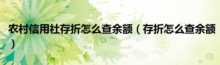 关于农村信用社存折怎么查余额,存折怎么查余额这个很多人还不知道,今天菲菲来为大家解答以上的问题,现在让我们一起来看看吧!