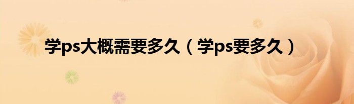 学ps大概需要多久(学ps要多久)
