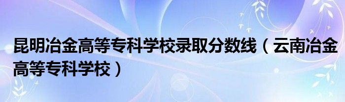 昆明冶金高等专科学校录取分数线(云南冶金高等专科学校)