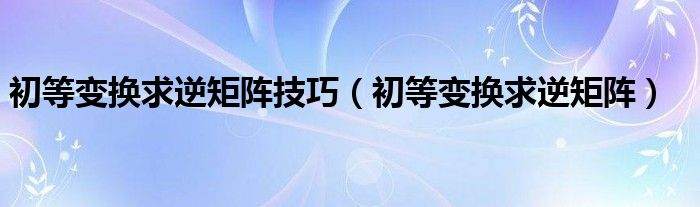 关于初等变换求逆矩阵技巧,初等变换求逆矩阵这个很多人还不知道,今天菲菲来为大家解答以上的问题,现在让我们一起来看看吧!
