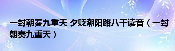 关于一封朝奏九重天 夕贬潮阳路八千读音,一封朝奏九重天这个很多人还不知道,今天菲菲来为大家解答以上的问题,现在让我们一起来看看吧!