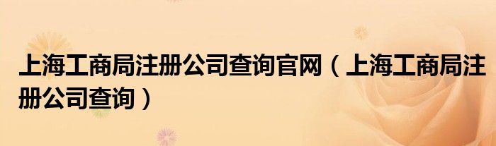 关于上海工商局注册公司查询官网,上海工商局注册公司查询这个很多人还不知道,今天菲菲来为大家解答以上的问题,现在让我们一起来看看吧!