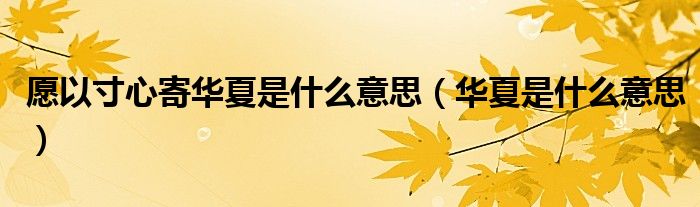 关于愿以寸心寄华夏是什么意思,华夏是什么意思这个很多人还不知道,今天菲菲来为大家解答以上的问题,现在让我们一起来看看吧!