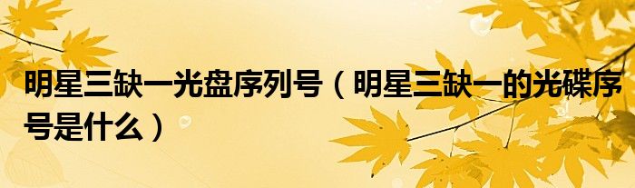 关于明星三缺一光盘序列号,明星三缺一的光碟序号是什么这个很多人还不知道,今天菲菲来为大家解答以上的问题,现在让我们一起来看看吧!