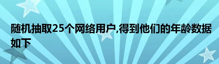 关于随机抽取25个网络用户,得到他们的年龄数据如下这个很多人还不知道,今天菲菲来为大家解答以上的问题,现在让我们一起来看看吧!