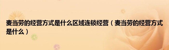关于麦当劳的经营方式是什么区域连锁经营,麦当劳的经营方式是什么这个很多人还不知道,今天菲菲来为大家解答以上的问题,现在让我们一起来看看吧!